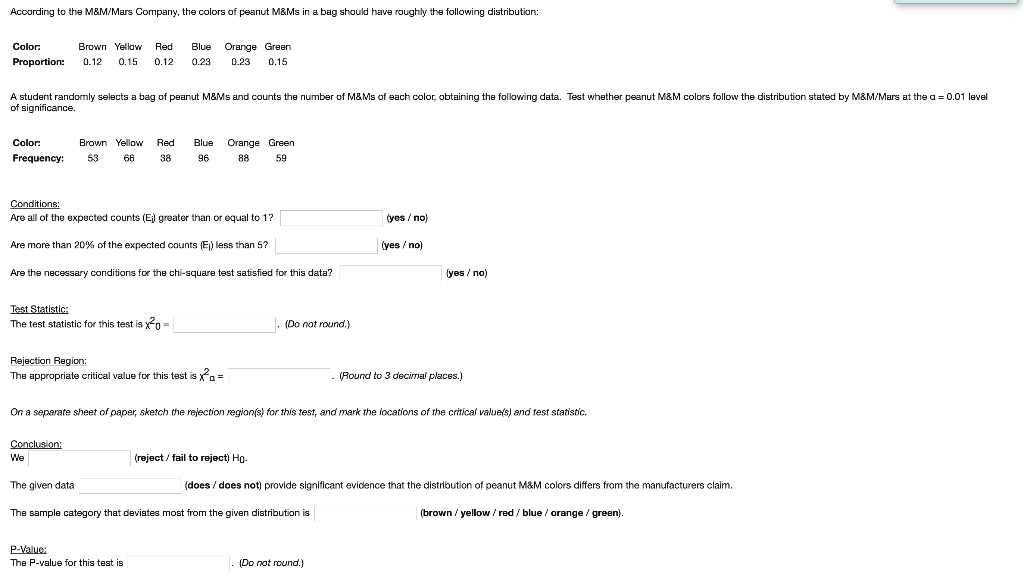 According To Mars Inc The Distribution Of Colors In A Bag Of M M Plain Was 13 Brown 14 Yellow 13 Red 20 Orange 16 Green And 24 Blue Peanut Was 12 Brown 15 Yellow 12 Red 23 Orange Homework Study Com